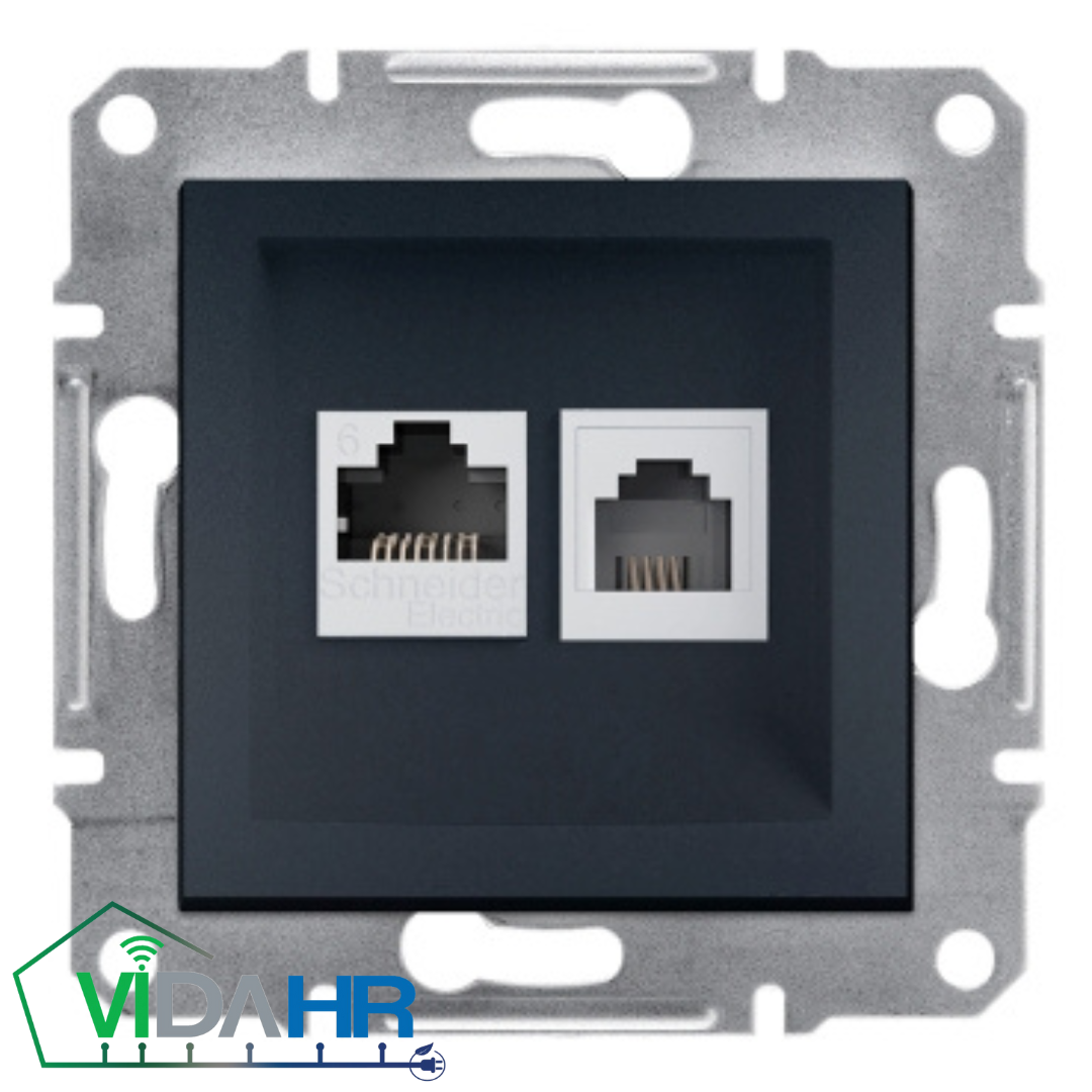 خانه کلید و پریز کلید و پریز اشنایدر آسفورا پریز تلفن و شبکه دو سوکت اشنایدر مدل آسفورا