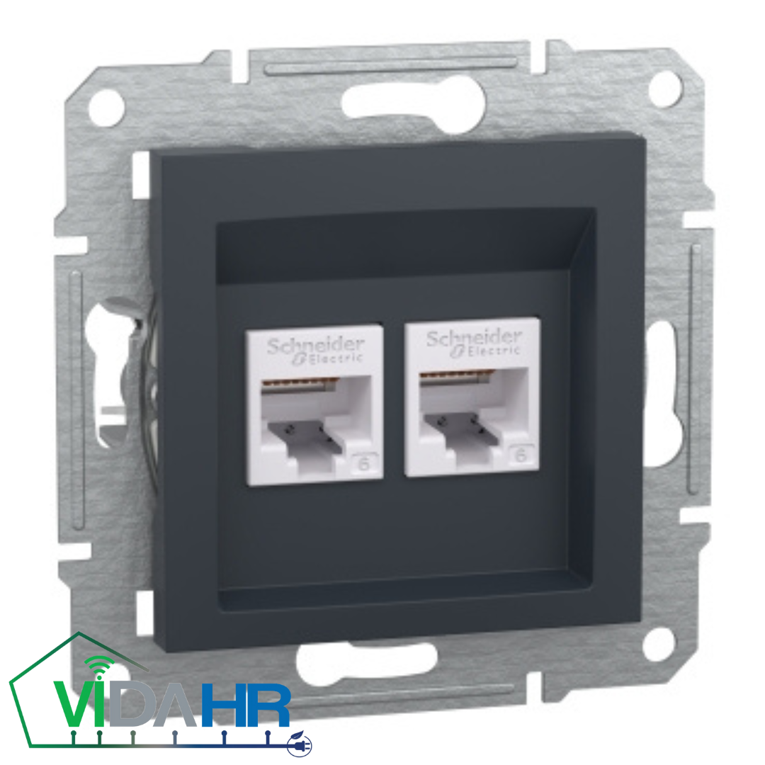خانه کلید و پریز کلید و پریز اشنایدر آسفورا پریز شبکه دو سوکت اشنایدر مدل آسفورا